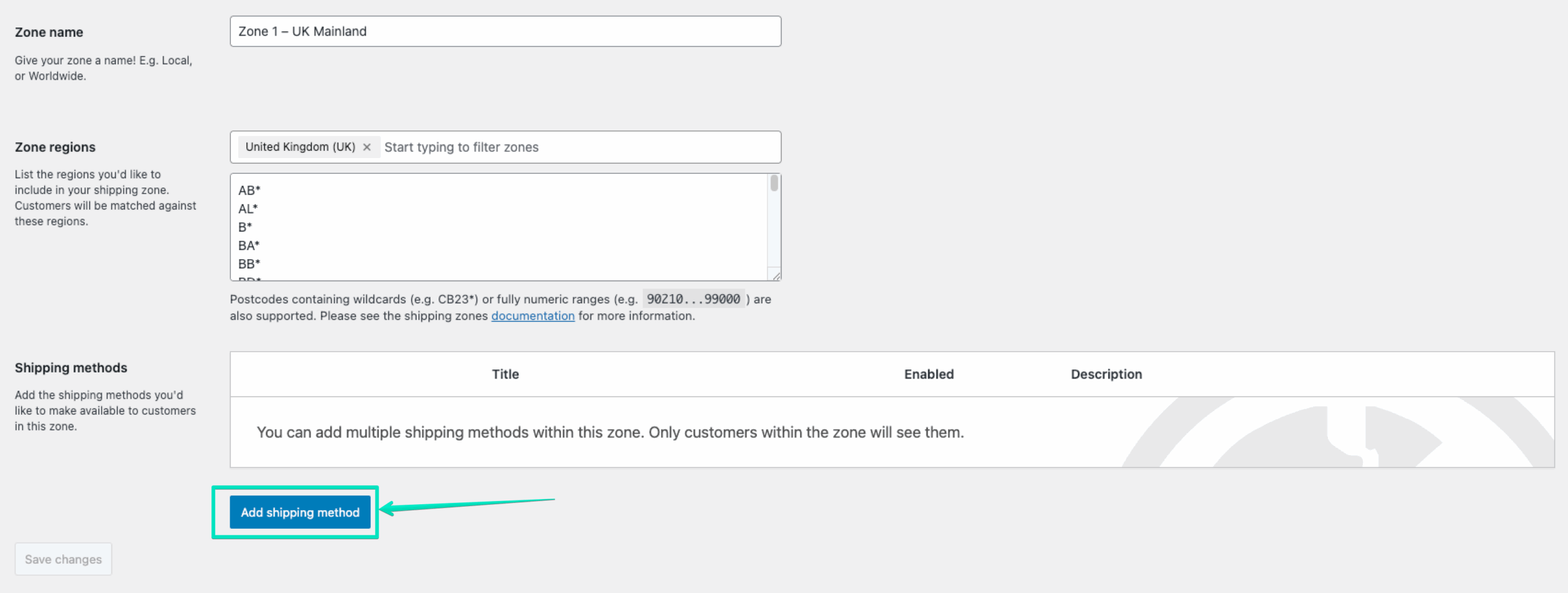 Next, click the Add shipping method button: