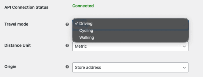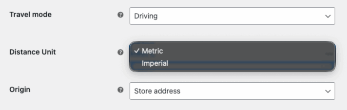 The plugin allows you to set the Distance Unit. You can pick between metric and imperial. Please have in mind, that this configuration will be applied to all the shipping rules that you will add later to configure shipping rates.