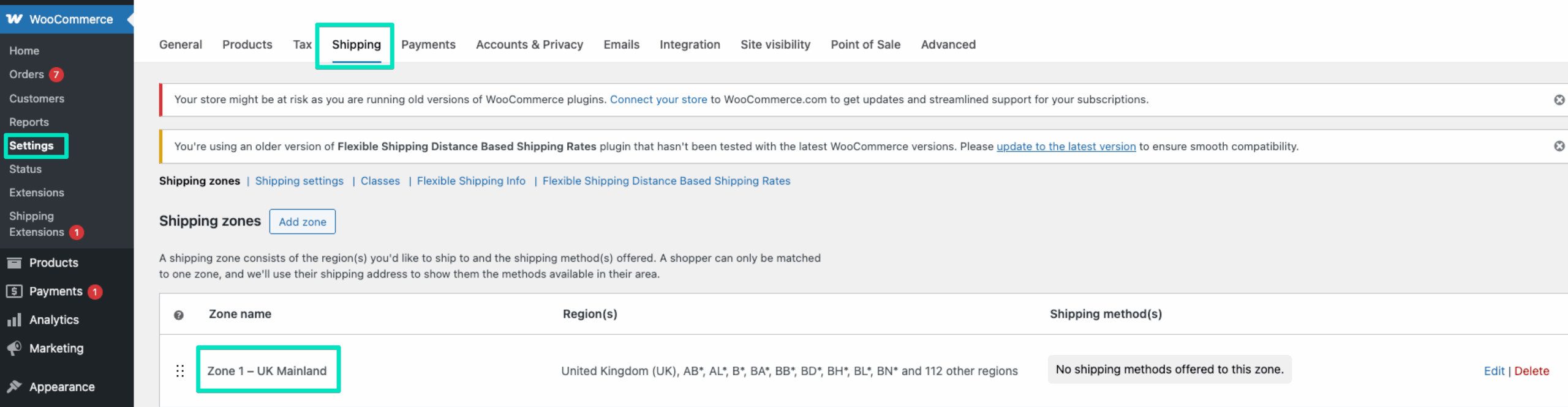 Go to the WooCommerce shipping tab (WooCommerce → Settings → Shipping). Then, click on the shipping zone which to you want to add the feature. I have the ‘UK’ shipping zone: