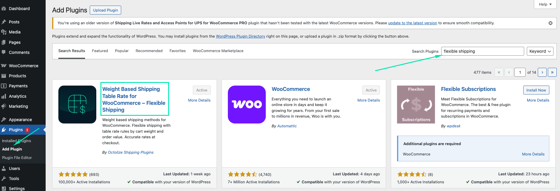 You can install Flexible Shipping right from your store. You just need to type the name in the Plugins – Add New.
