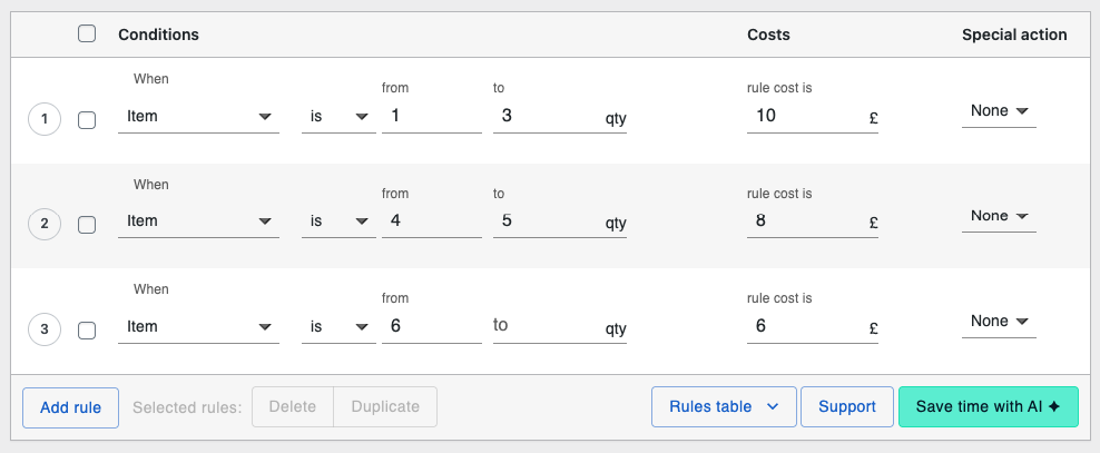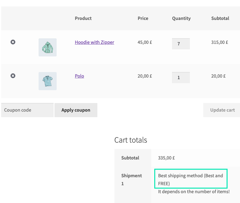 And the last example – £6.00 of shipping cost for 8 products in the cart: