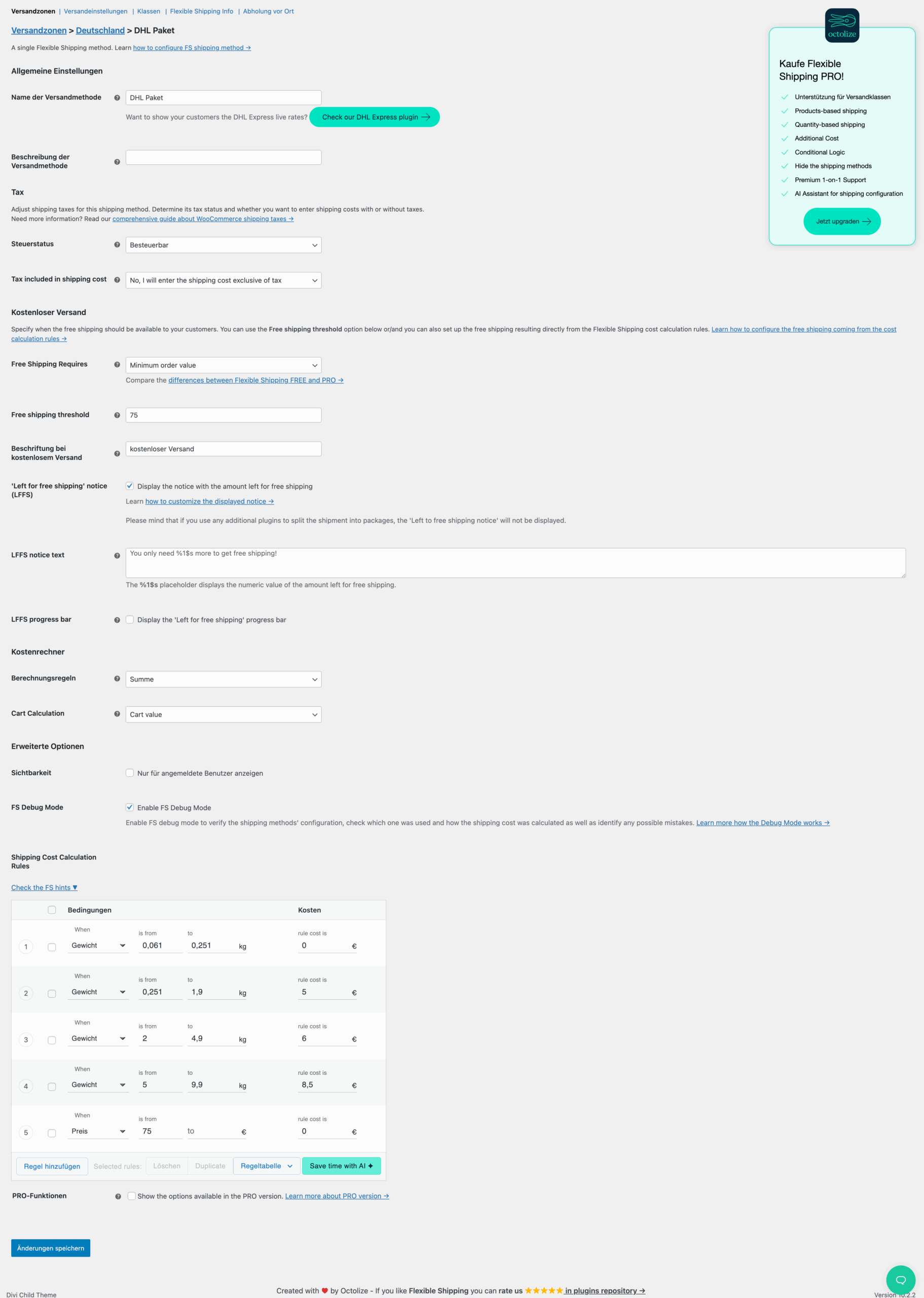 I realize that this is a bit complicated. However, I have an additional tool that will make it easier to set the appropriate shipping cost including tax. It’s plugin called Flexible . All tax settings for shipping that you’ve read above are also supported by the plugin. However, it has additional functionality so that you can enter shipping costs along with tax directly on the method, regardless of the WooCommerce settings.