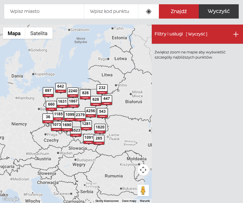 Dodana metoda dostawy Punkt DPD Pickup jest aktywna i od tego momentu punkty DPD pickup powinny być możliwe do wyboru przez Twoich klientów w koszyku oraz wyświetlać się na stronie koszyka w sposób podobny do poniższego (w zależności od miejsca umieszczenia widgetu mapy punktów DPD w Twoim szablonie):