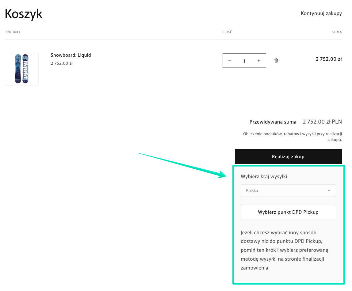 Dodawanie widgetu Mapy punktów DPD Pickup do szablonu strony Koszyka