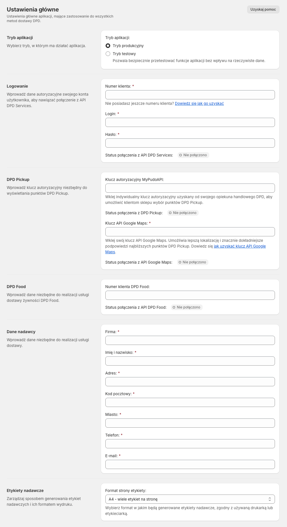 Uzupełnij poniższe pola jeżeli chcesz oferować swoim klientom dostawę produktów za pomocą usługi DPD Food: