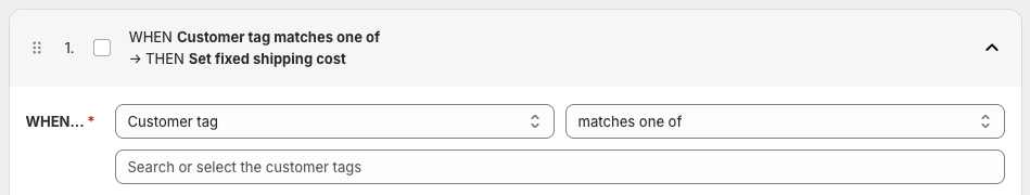 If the configured WHEN condition is met, the defined fixed shipping rate will be applied.